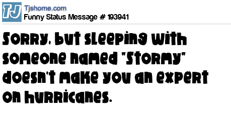 X says Sorry, but sleeping with someone named "Stormy" doesn't make you an expert on hurricanes.