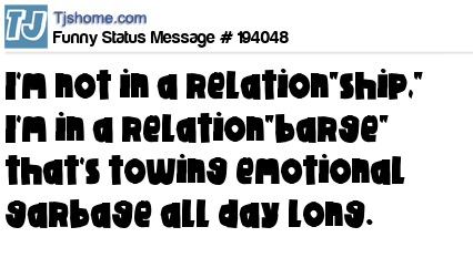 X says I'm not in a relation"ship," I'm in a relation"barge" that's towing emotional garbage all day long.