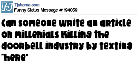 X says Can someone write an article on millenials killing the doorbell industry by texting "here"