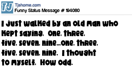 X is I just walked by an old man who kept saying, “One, three, five, seven, nine…one, three, five, seven, nine.” I thought to myself, “How odd.”