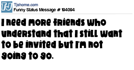 X says I need more friends who understand that I still want to be invited but I'm not going to go.