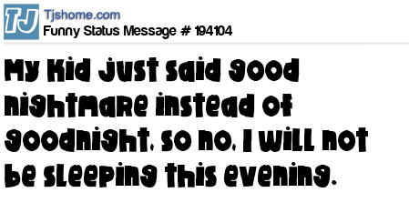 X says My kid just said good nightmare instead of goodnight, so no, I will not be sleeping this evening.