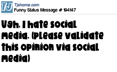 X says Ugh, I hate social media. (please validate this opinion via social media)