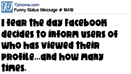 - # 29314 I fear the day Facebook decides to inform users of who has viewed their profile... and how many times. ツ