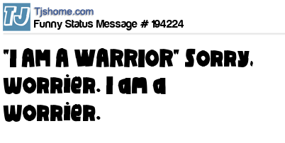 X says "I AM A WARRIOR" Sorry, worrier. I am a worrier.