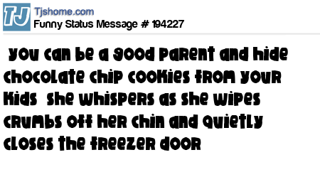 X says “you can be a good parent and hide chocolate chip cookies from your kids” she whispers as she wipes crumbs off her chin and quietly closes the freezer door