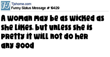 X says a woman may be as wicked as she likes, but unless she is pretty it will not do her any good