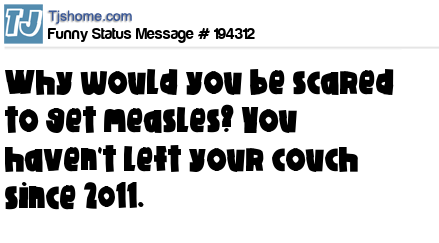 X says Why would you be scared to get measles? You haven't left your couch since 2011.