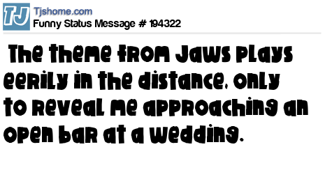 X says The theme from Jaws plays eerily in the distance, only to reveal me approaching an open bar at a wedding.