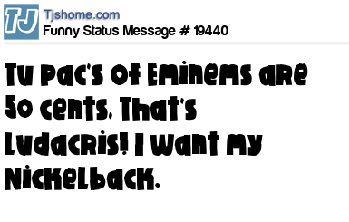 - # 76210 A Tupac Of Eminem's Costs 50 Cents? That's Ludacris! I Want My Nickleback.