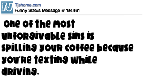 - # 194473 One of the most unforgivable sins is spilling your coffee because you're texting while driving.