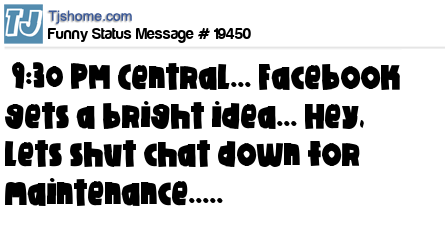 X 9:30 PM Central... Facebook gets a bright idea... Hey, lets shut chat down for maintenance.....
