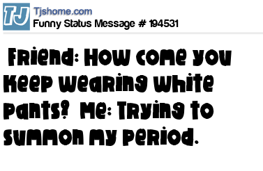 X says Friend: How come you keep wearing white pants? Me: Trying to summon my period.