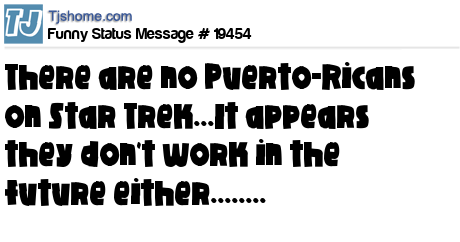 - # 26353 why aren't there any puerto ricans on the show Star Trek? answer..cause they don't plan to work in the future either!!!
