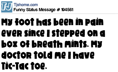 X says My foot has been in pain ever since I stepped on a box of breath mints. My doctor told me I have Tic-Tac toe.