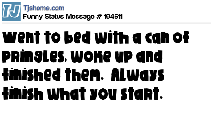 X says Went to bed with a can of pringles, woke up and finished them. Always finish what you start.