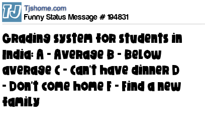 X says Grading system for students in India: A - Average B - Below average C - Can't have dinner D - Don't come home F - Find a new family