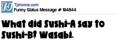 X is What did Sushi-A say to Sushi-B? Wasabi.