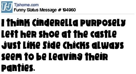 X says I think Cinderella purposely left her shoe at the castle just like Side Chicks always seem to be leaving their panties.
