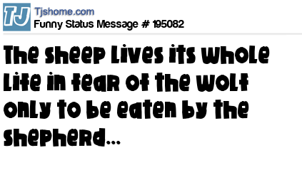 - # 185083 A sheep spends it's entire life fearing the wolf only to be eaten by the Shepherd.