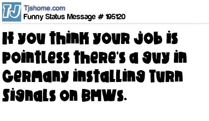 - # 207334 If you think your job is pointless, remember: There are people in Germany installing turn signals on BMWs.