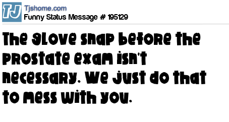 X says The glove snap before the prostate exam isn't necessary. We just do that to mess with you.