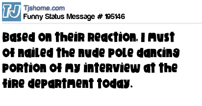 X says Based on their reaction, I must of nailed the nude pole dancing portion of my interview at the fire department today.