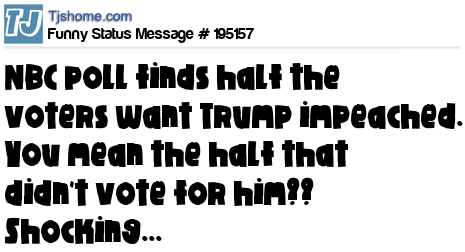 X  NBC poll finds half the voters want Trump impeached. You mean the half that didn't vote for him?? Shocking...