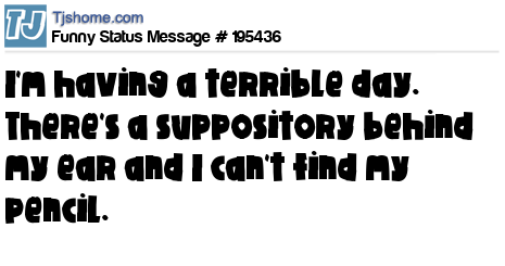 X says I'm having a terrible day. There's a suppository behind my ear and I can't find my pencil.