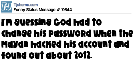 X I'm guessing God had to change his password when the Mayan hacked his account and found out about 2012.