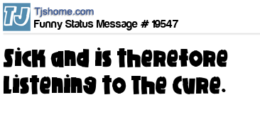 - # 121140 I'm not sick, I'm twisted. Sick makes it sound like there's a cure...