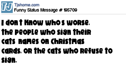 X says I don’t know who’s worse, the people who sign their cats’ names on Christmas cards, or the cats who refuse to sign.