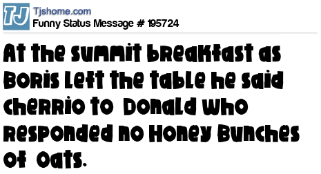 X is At the summit breakfast as Boris left the table he said cherrio to Donald who responded no Honey Bunches of Oats.