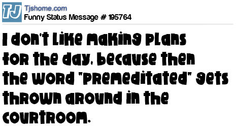 X says I don't like making plans for the day, because then the word "premeditated" gets thrown around in the courtroom.