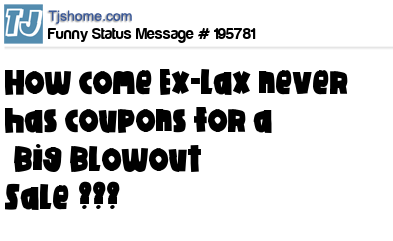 X says How come Ex-Lax never has coupons for a “Big Blowout Sale”???