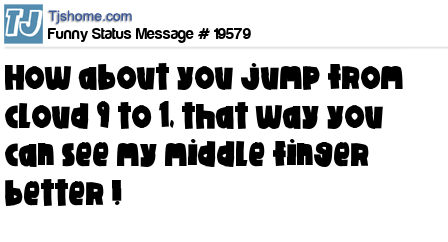 X says how about you jump from cloud 9 to 1, that way you can see my middle finger better !