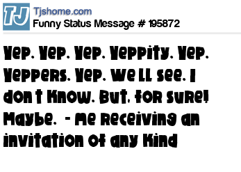 X says Yep. Yep. Yep. Yeppity. Yep. Yeppers. Yep. We’ll see. I don’t know. But, for sure! Maybe. - me receiving an invitation of any kind