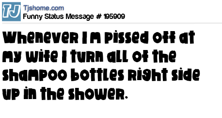 X says Whenever I’m pissed off at my wife I turn all of the shampoo bottles right side up in the shower.