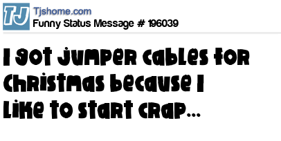 X says I got jumper cables for Christmas because I like to start crap...
