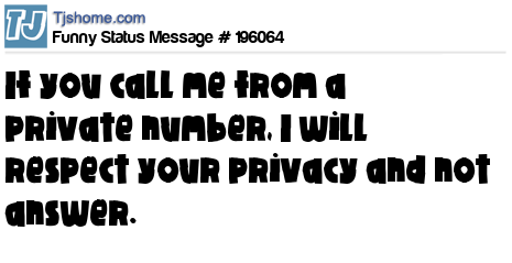 - # 208511 If you call me from a private number, I'll respect your privacy and not answer.