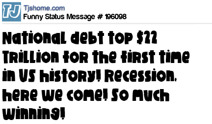 X is National debt top $22 Trillion for the first time in US history! Recession, here we come! So much winning!