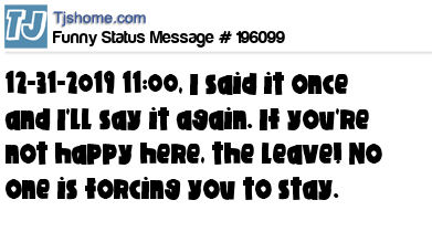 X is 12-31-2019 11:00, I said it once and I'll say it again. If you're not happy here, the leave! No one is forcing you to stay.