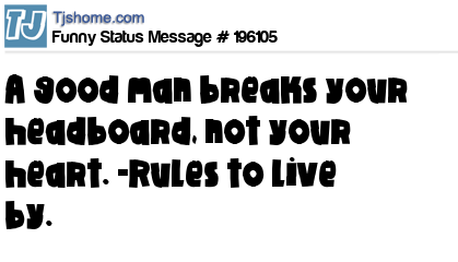 X says A good man breaks your headboard, not your heart. -Rules to live by.