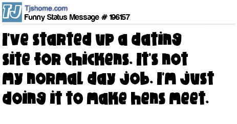X says I've started up a dating site for chickens. It's not my normal day job. I'm just doing it to make hens meet.