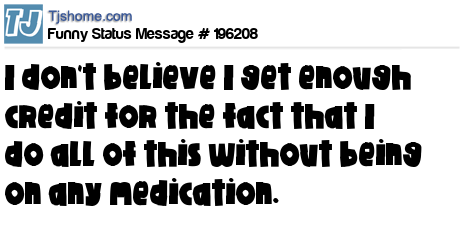 - # 141941 I don't think I get enough credit for the fact that I do all of this unmedicated.