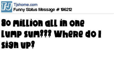 - # 95223 If you are the winner of Friday's $500 million Mega Millions jackpot can receive the winnings in one lump sum, yearly installments, or one tank of gas.