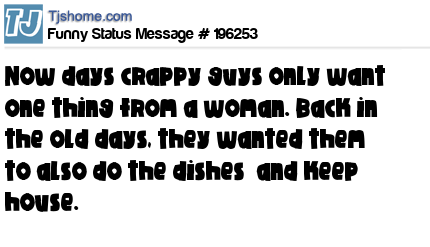 X is Now days crappy guys only want one thing from a woman. Back in the old days, they wanted them to also do the dishes and keep house.