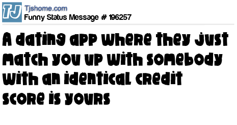 X says A dating app where they just match you up with somebody with an identical credit score is yours