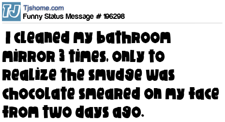 X says  I cleaned my bathroom mirror 3 times, only to realize the smudge was chocolate smeared on my face from two days ago.