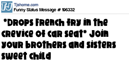 X says *Drops French fry in the crevice of car seat* Join your brothers and sisters sweet child